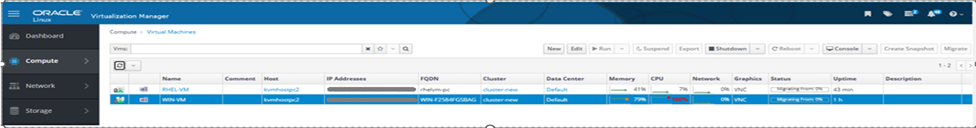 To start the migration, select the VM to be migrated, right click on the VM and select migrate option. As shown in the screenshot below, the migration has been completed successfully. The VMs have been moved from kvmhostpc2 to kvmhostpc1.