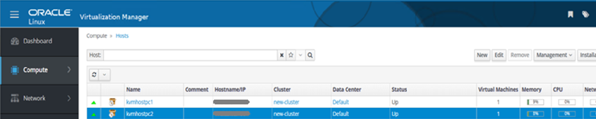 A.    Login to the administrative console, click on Compute, then Hosts, click on new button and add the KVM hosts. For detailed steps, refer to the Oracle Linux Virtualization Manager Guides.