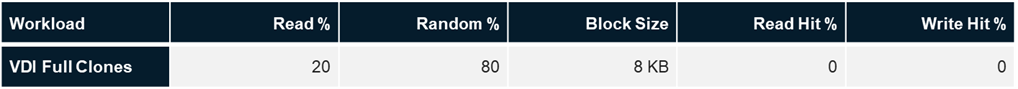 This workload mimics an aggregated I/O profile of storage system running mostly VMware. It uses two constituent sub-profiles which are ran together.
