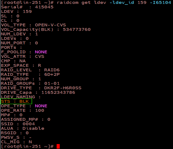 a.     Syntax: To retrieve a list of undefined LDEV IDs number in decimal form, run the following CCI command: