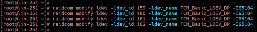 # raidcom modify ldev -ldev_id <ldev_id> -ldev_name  <suitable_name> <horcm_instance>
