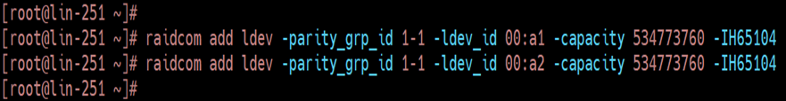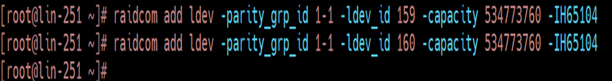 # raidcom add ldev -parity_grp_id <parity_grp_id> -ldev_id <undefined_ldev_id> -capacity <size_in_blocks_or_bytes> <horcm_instance>
