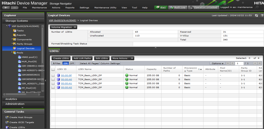 Basic LDEVs are created using CCI and can be verified from SVP, as shown in the following screenshot: