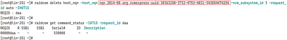 14. Remove the HOST NQN associated with the NVM subsystem ID identified in Step 7.