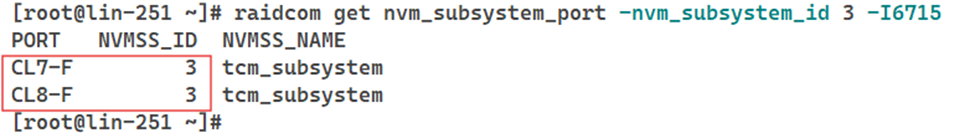 5. Check each NVM subsystem to determine which one contains the target ports and note the subsystem ID for later steps.