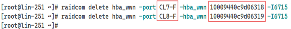 # raidcom delete hba_wwn -port <target_port> -hba_wwn <hba_wwn> -<horcm_instance>