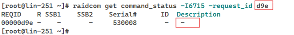 If the Description field in the output shows a “-”, it indicates that the command completed successfully, as shown in the example below.