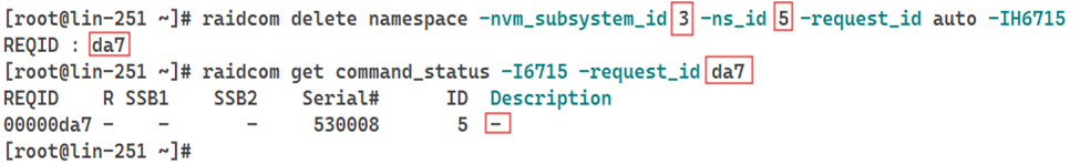 # raidcom delete namespace -nvm_subsystem_id <subsystem_id> -ns_id <namespace_id> -request_id auto -<horcm_instance>