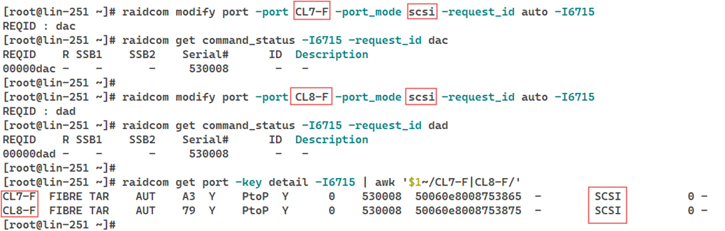 # raidcom modify port -port <target_port> -port_mode scsi -request_id auto -<horcm_instance>
