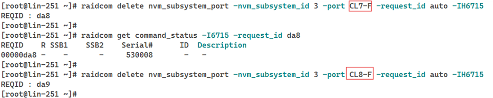 12. Remove the target ports associated with the NVM subsystem ID identified in Step 5.