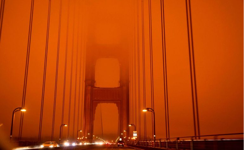 California Wildfires Create Red Sky over Gate Bridge at 11:00 am September 9, 2020