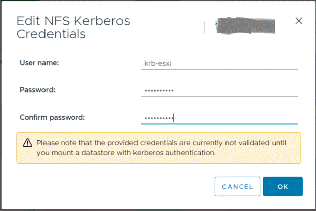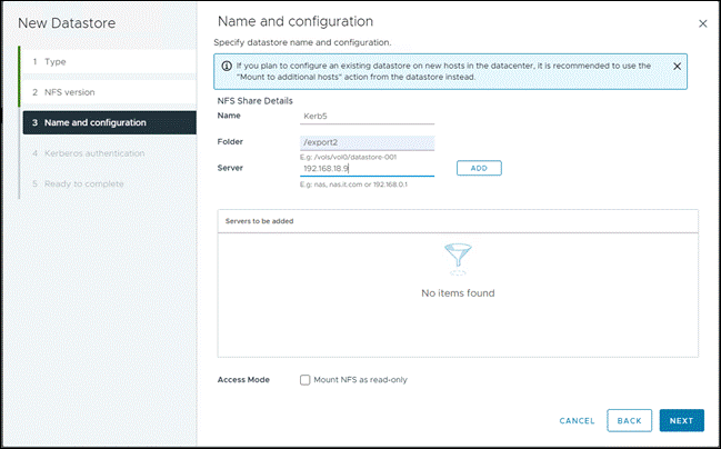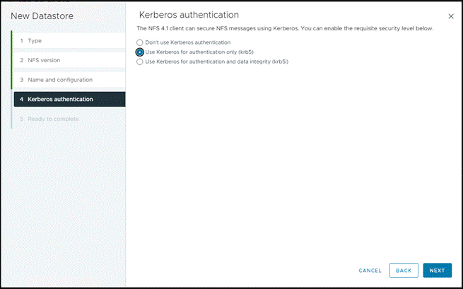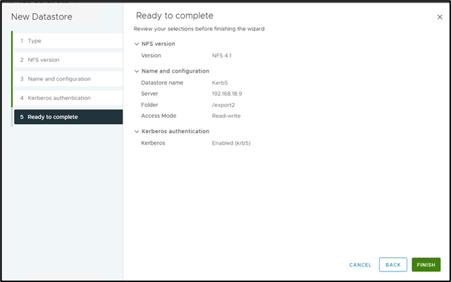 - After that you can add NFS 4.1 datastore with Kerberos 5 authentication.
