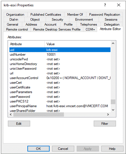 - Set Unix attributes of the User Account for ESXi server like uid and uidNumber.