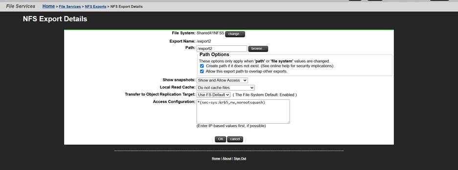- Fill out NFS Share Details