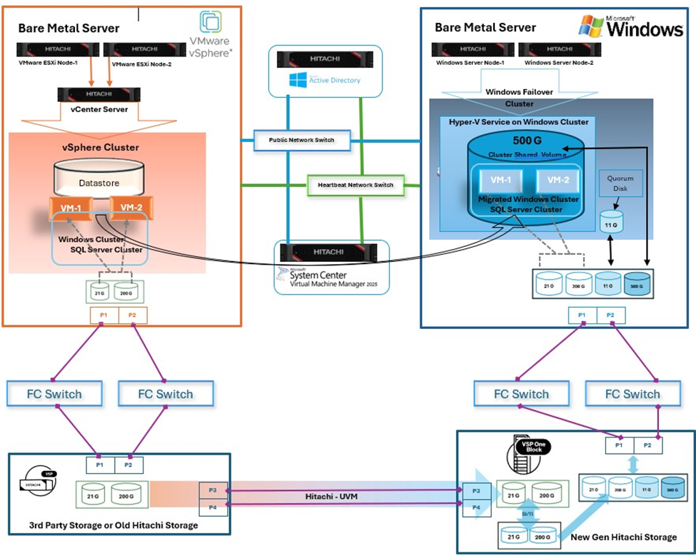 Migrating enterprise workloads between virtualization platforms is no longer rare—it's a necessity for organizations chasing flexibility, cost savings, and modernization. This post distills the newly released implementation guide, Cross-Platform Virtual Machine Migration, into a concise, step-by-step journey. The scenario simulates an “existing” VMware vSphere cluster running on an older Hitachi VSP F700 storage system, migrating into a modern Microsoft Hyper-V failover cluster powered by the latest Hitachi VSP One Block 28. Orchestration is handled by System Center Virtual Machine Manager (SCVMM), demonstrating how legacy environments can be transitioned to next-generation infrastructure with minimal, planned disruption.
