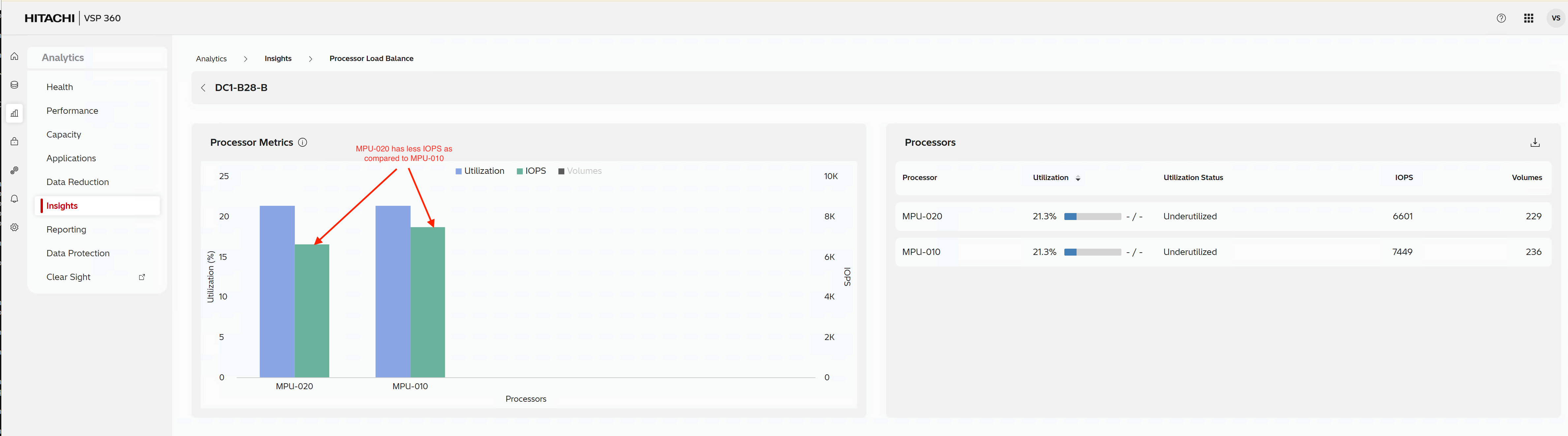 VSP 360 shows this on the dashboard. Select "Processor Load Balance".