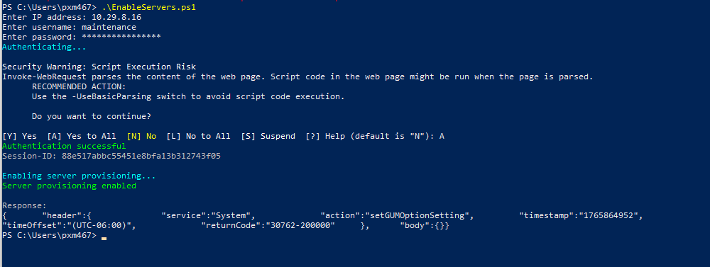 $provisionResponse = Invoke-WebRequest -Uri $url -Method POST -Headers $provisionHeaders -Body $provisionPayload -WebSession $session