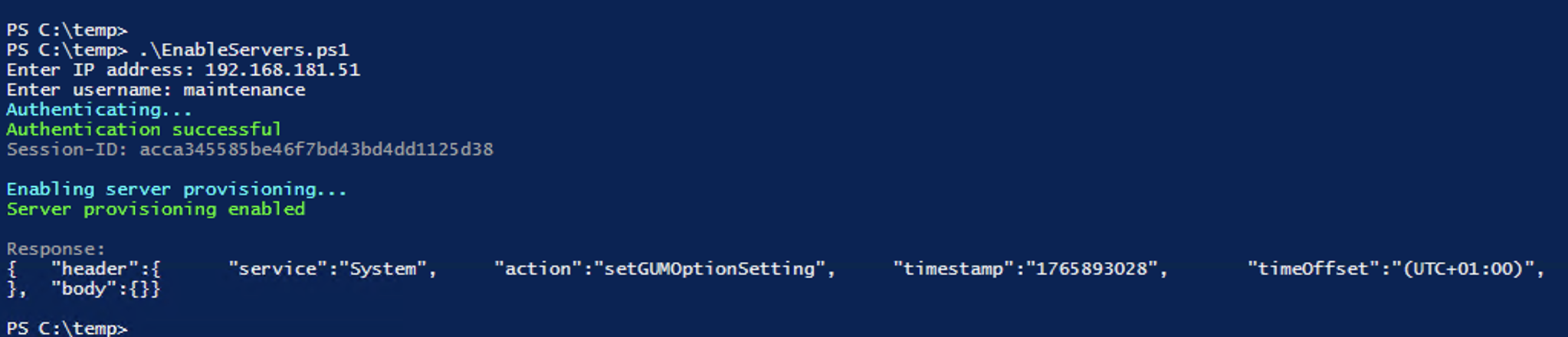 Write-Host "Enabling server provisioning..." -ForegroundColor Cyan