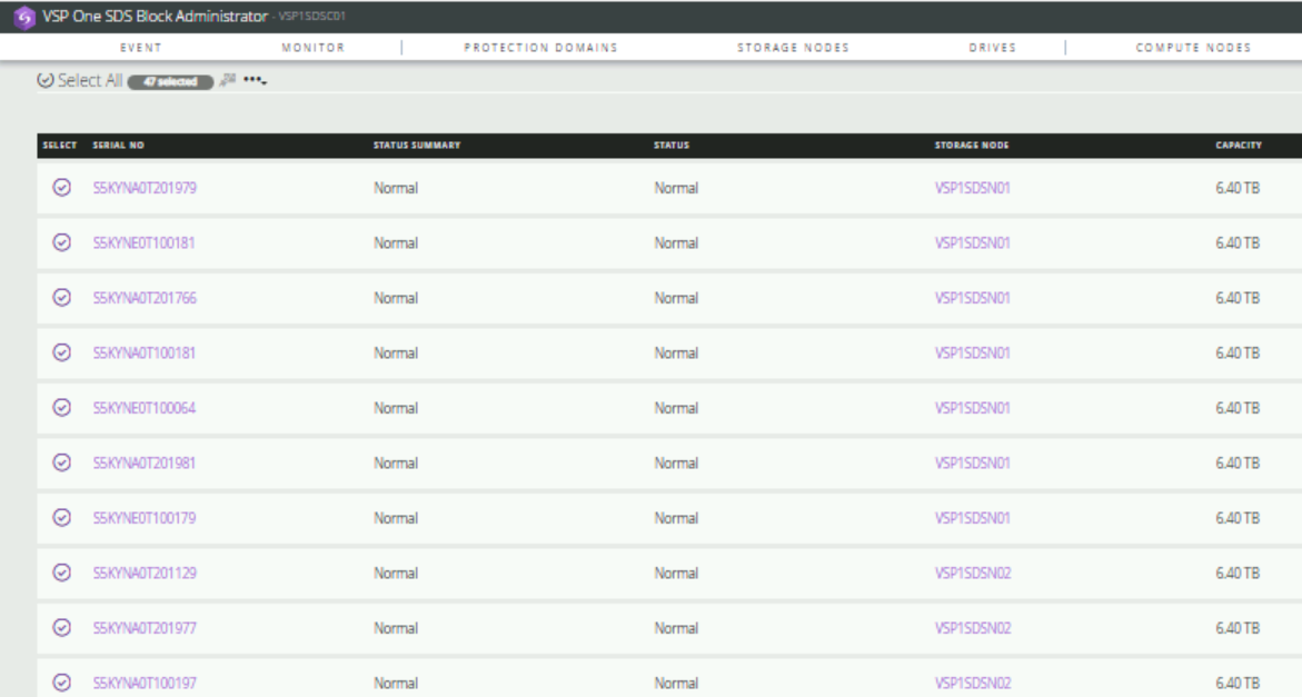My drives tab itself shows only 47 drives instead of 48 (8 * 6 nodes). It is the drive in 8th slot on my first node. From the iLO, I can see the drive is online. The bios settings are at default per the documentation for G20 server. All the other disks on this node are visible as well except the last drive.